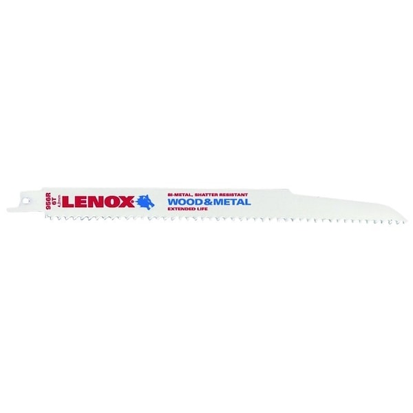 The LENOX - 20582956R is a 9 in bi-metal reciprocating saw blade with 6 teeth per inch for reciprocating saw applications.