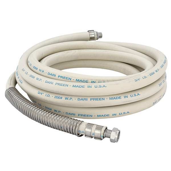 Coolant Hose, Pipe Size 1/2 in, Length 75 ft, Material Brass, EPDM, Steel, Flow Rate 6 gpm, Max. Pressure 125 psi, Temp. Range 60 Degrees to 180 Degrees F, Color Cream, Includes Brass Couplings