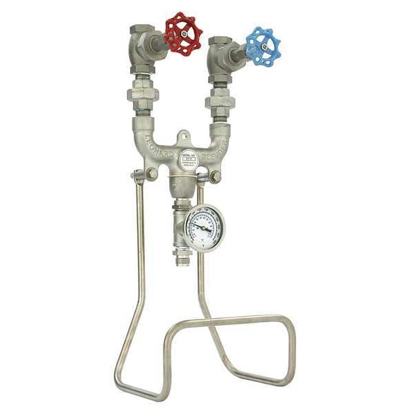 Hose Station, Pipe Size 3/4 in, Max. Flow Rate 6 gpm, Height 25 in, Width 10 in, Length 10 in, Connection Type FNPT x MGHT, Max. Water Pressure 125 psi, Max. Steam Pressure 80 psi, Temp. Range 60 Degrees to 200 Degrees F, Dial Range 20 Degrees to 240 Degrees F, Material Stainless Steel, Finish Stainless Steel, Hose Rack Material Stainless Steel, Valve Material Stainless Steel, Includes Mounting Hardware