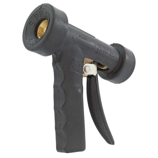 Adjustable Spray Hose Nozzle, Pipe Size 1/2 In., Length 6 In., Material Bronze Body/Rubber Cover, Connection Type FNPT, Flow Rate 6 gpm, Max. Pressure 125 psi, Nozzle Shutoff Handle Controls, Temp. Range 60 Degrees to 180 Degrees F, Color Black