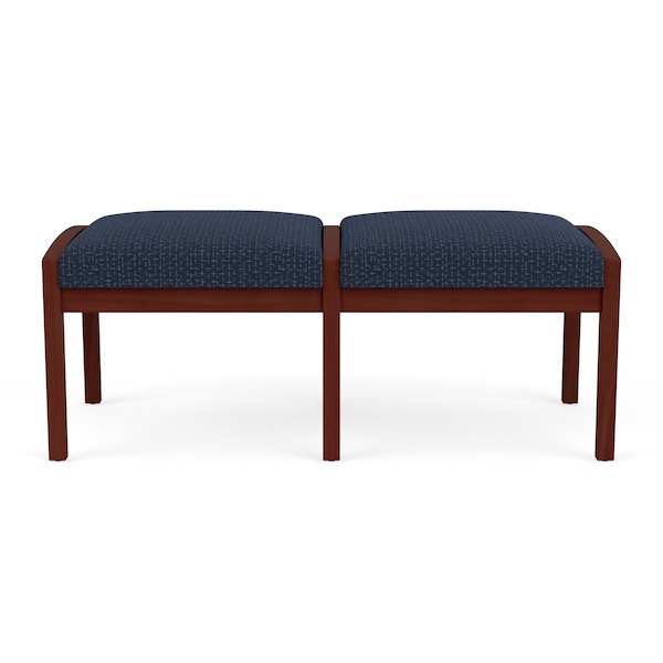 Lenox Wood 2 Seat Bench Wood Frame, Mahogany, RF Blueberry Upholstery