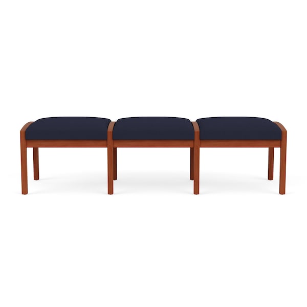 Lenox Wood 3 Seat Bench Wood Frame, Cherry, OH Navy Upholstery