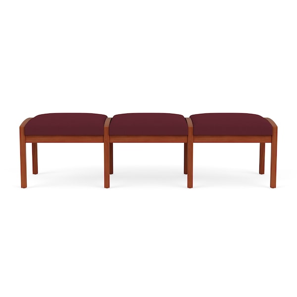 Lenox Wood 3 Seat Bench Wood Frame, Cherry, OH Wine Upholstery