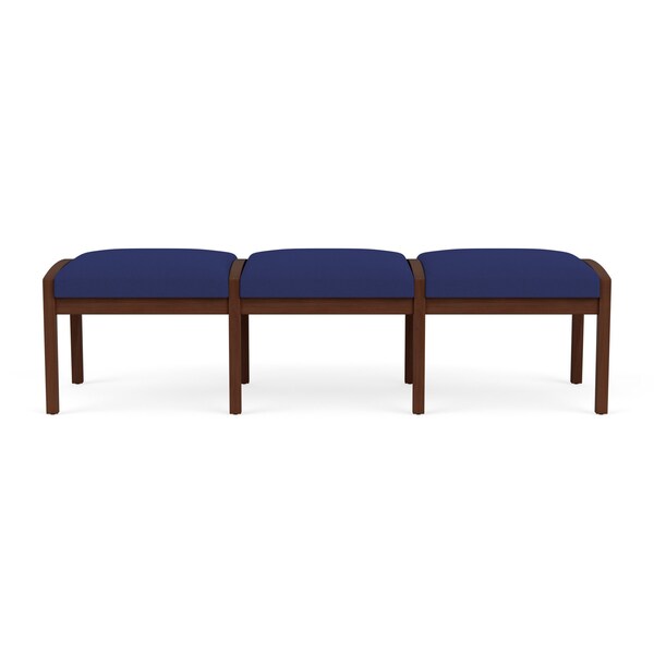 Lenox Wood 3 Seat Bench Wood Frame, Walnut, OH Cobalt Upholstery