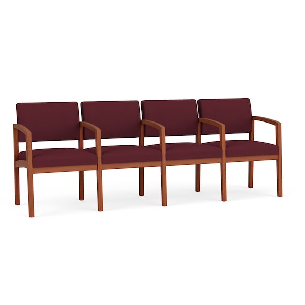 Lenox Wood 4 Seat Tandem Seating Wood Frame, Cherry, OH Wine Upholstery