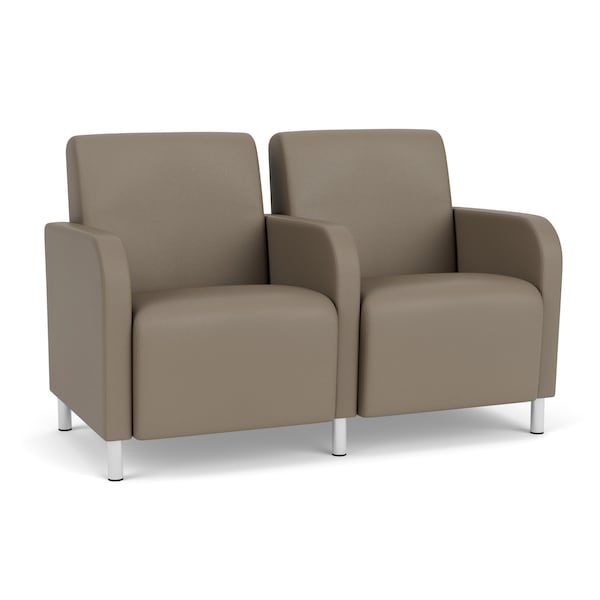 Siena Lounge Reception 2 Seat Tandem Seating, Brushed Steel, MD Farro Upholstery