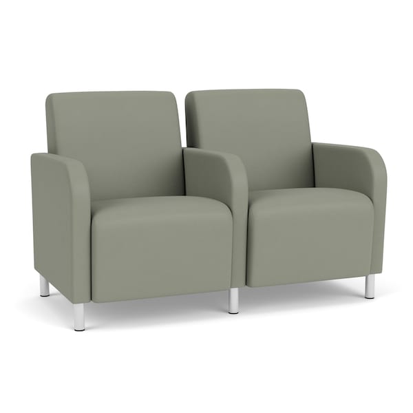 Siena Lounge Reception 2 Seat Tandem Seating, Brushed Steel, OH Eucalyptus Upholstery