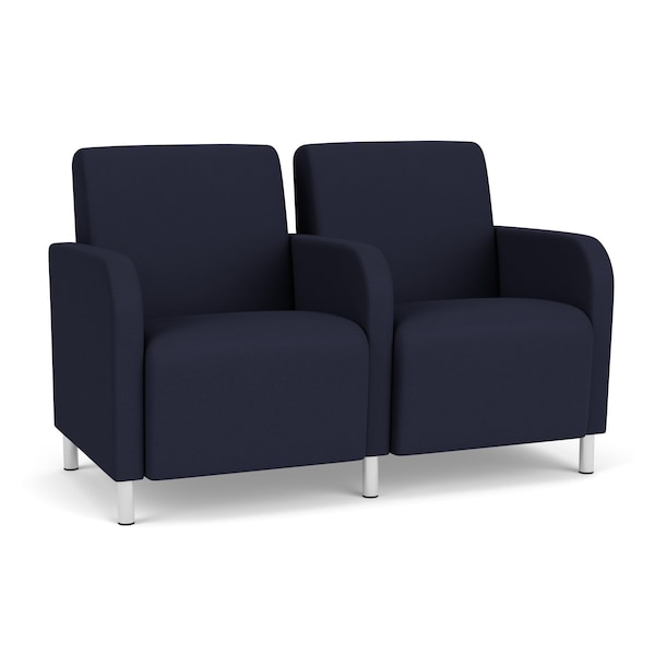 Siena Lounge Reception 2 Seat Tandem Seating, Brushed Steel, OH Navy Upholstery