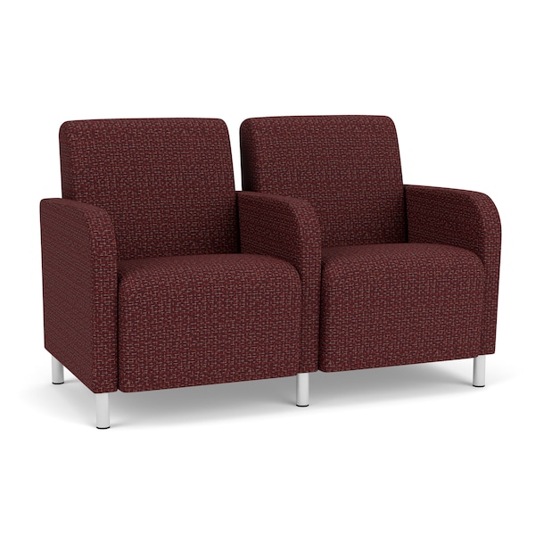 Siena Lounge Reception 2 Seat Tandem Seating, Brushed Steel, RF Nebbiolo Upholstery