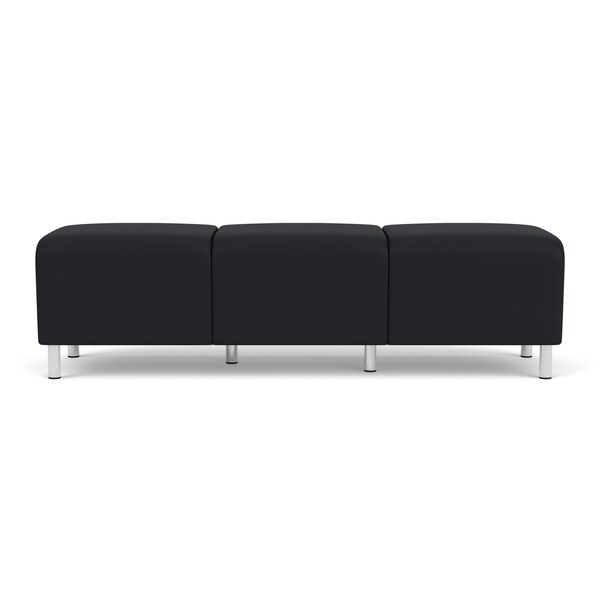 Siena Lounge Reception 3 Seat Bench, Brushed Steel, MD Black Upholstery
