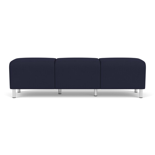 Siena Lounge Reception 3 Seat Bench, Brushed Steel, OH Navy Upholstery
