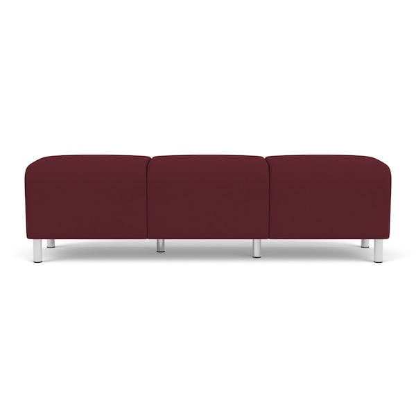 Siena Lounge Reception 3 Seat Bench, Brushed Steel, OH Wine Upholstery