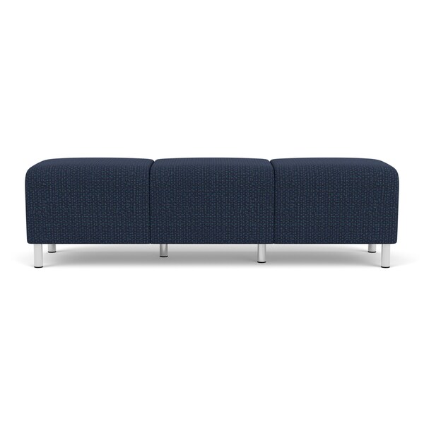 Siena Lounge Reception 3 Seat Bench, Brushed Steel, RF Blueberry Upholstery