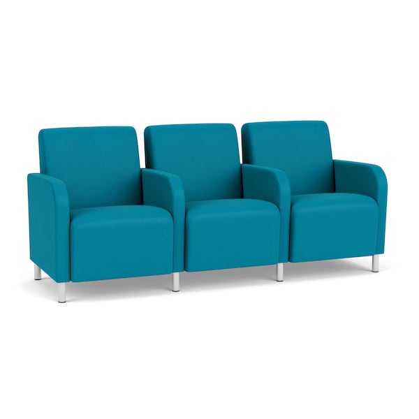 Siena Lounge Reception 3 Seat Tandem Seating, Brushed Steel, OH Waterfall Upholstery