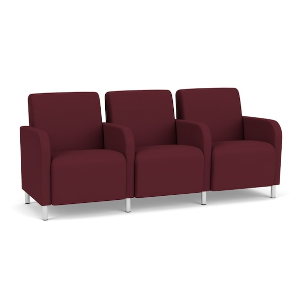Siena Lounge Reception 3 Seat Tandem Seating, Brushed Steel, OH Wine Upholstery