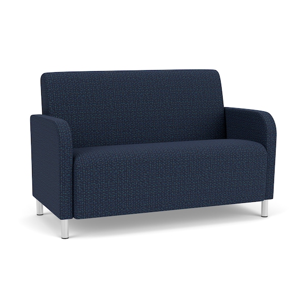Siena Lounge Reception Loveseat, Brushed Steel, RF Blueberry Upholstery