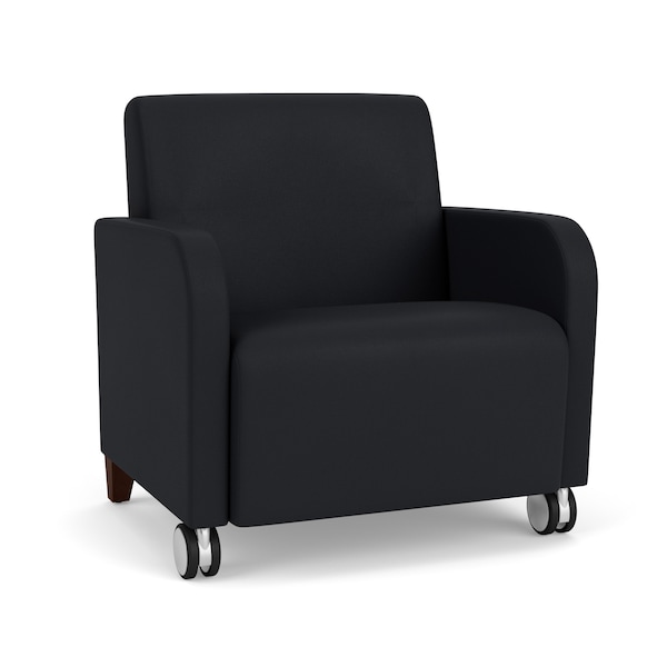 Siena Lounge Reception Wide Guest Chair w/ Front Casters, Walnut Wood Back Legs, MD Black Uph