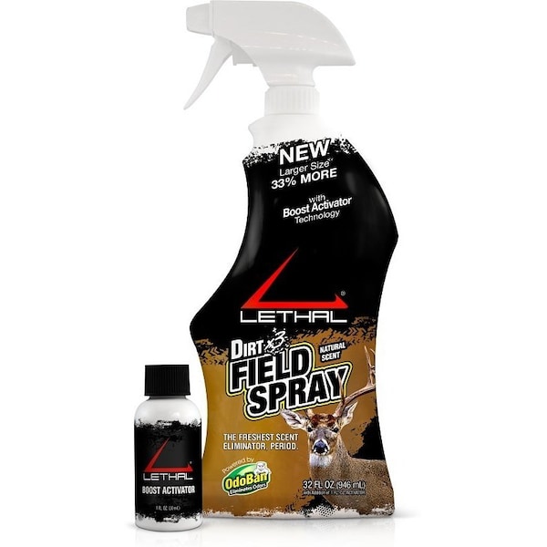 Lethal DIRT X3 uses a natural dirt scent that acts as a cover scent and attractant while combined with Lethal's patented human scent elimination technology. The Boost Activator charges the product with human odor eliminating bonding agents.