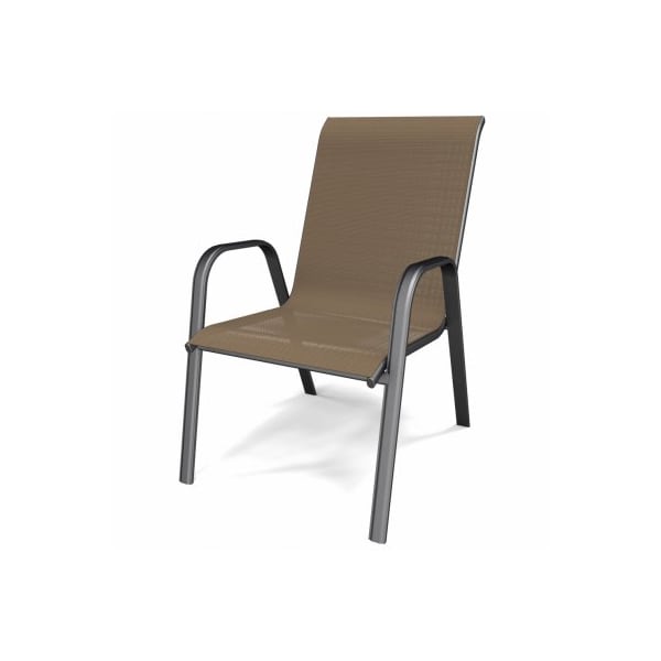 Four Seasons Courtyard Sunny Isles mocha tan steel slink stack chair Sturdy powder coated black steel frame with mocha tan sling fabric Stacks for easy storage Dimensions 2913 in D x 2126 in W x 3661 in H Weight capacity 250 lbs