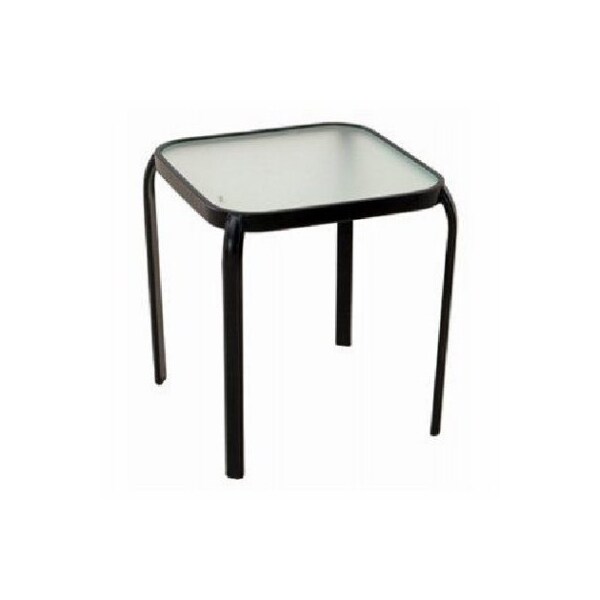 Four Seasons Courtyard, Sunny Isles 16 Glass Square Table Features sturdy black powder coated steel frame with a tempered glass table top Table size 16D x 16W x 16H