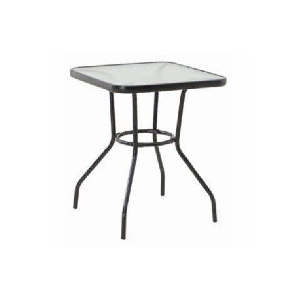 Four Seasons Courtyard Sunny Isles 24 inch square table Sturdy powder coated black steel frame with a tempered glass table top Dimensions 24 in D x 24 in W x 279 in H