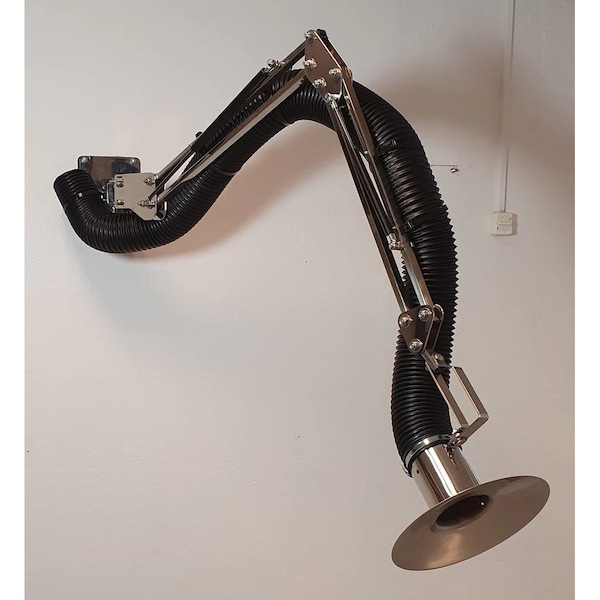 7' 2" ATEX extractor arm c/w 6.3"diameter hose, 67 degrees flared capture hood and wall bracket