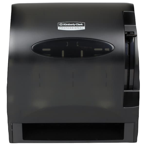 Kimberly-clark Professional roll towel dispenser series: LEV-R-MATIC*, 9.8 in OAL, 13.3 in overall width, 13-1/2 in overall height, wall mounting, plastic, black finish/color, domestic.