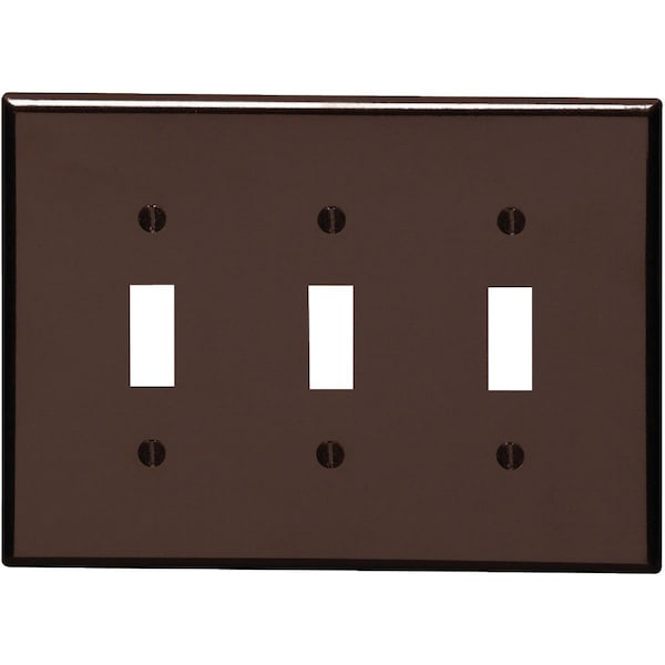 3-Gang Smooth Plastic Mid-Way Toggle Switch Wall Plate, Brown