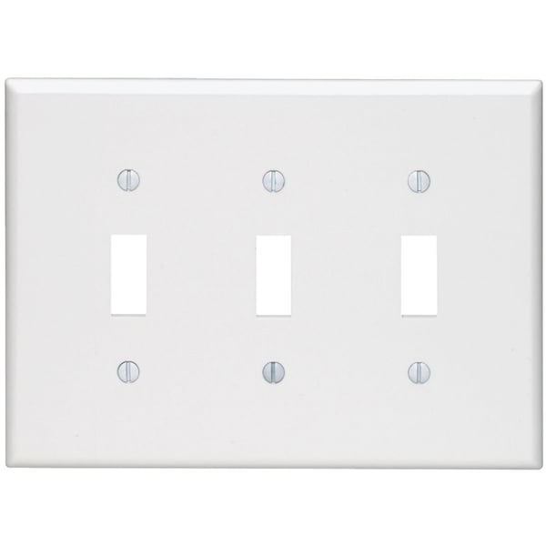 3-Gang Smooth Plastic Mid-Way Toggle Switch Wall Plate, White