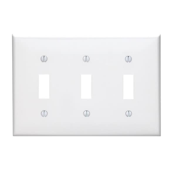 3-Gang Thermoplastic Nylon Toggle Switch Wall Plate, White