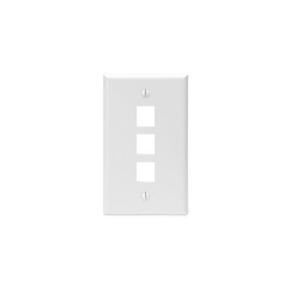 3-Port Wallplate Unloaded, 1-Gang Use W/Snap-In Modules, Quickport WH