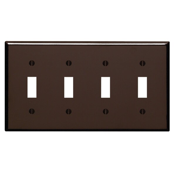 4-Gang Plastic Toggle Switch Wall Plate, Brown