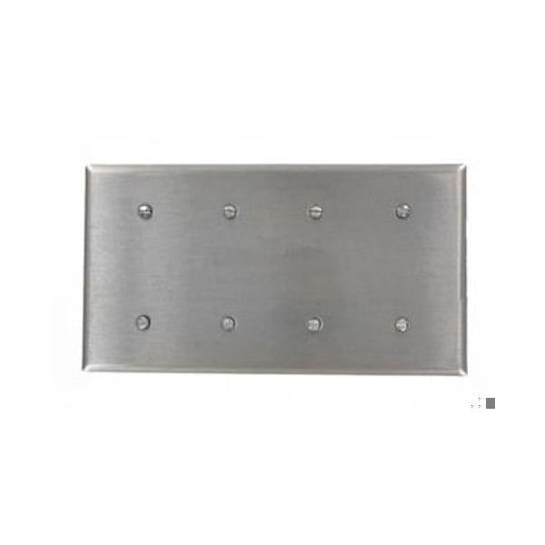 Blank Wall Plate, Number of Gangs: 4 Stainless Steel, Silver