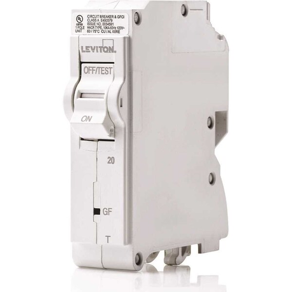 Leviton GFCI Circuit Breakers provide overload, short-circuit, and ground-fault protection and feature an all plug-on design. All hot and neutral wires terminate at custom lugs in the panel, not at the circuit breaker, so the entire panel can be wired without circuit breakers installed. Branch circuit breakers can be easily plugged on at final installation. They also feature color indicators in the handle and intuitive LEDs to easily see operational status at-a-glance. For applications up to 60 Amp when using copper wire or 50 Amp when using aluminum wire.Simple - features an all plug-on design - no wiring to the circuit breakerIntuitive - color indicators in the handle to easily see operational status at-a-glanceApproachable - contemporary aesthetic and rocker style handle are more user friendlySafe - exceeds UL requirements for circuit breakers, making sure it will not reset if fault protection is compromisedCompatible only with Leviton load centers
