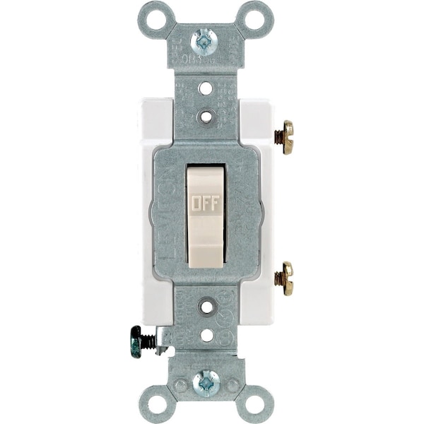 Single pole switch ideal for controlling one fixture from a single location. Commercial specification grade. Applications include municipal facilities government buildings malls department stores hospitals office buildings schools and more. Long-life toggle switch with captive mounting screws for fast installation. Large-head terminal screws backed out and staked for fast side wiring of up to No. 10 copper wire. Heavy-gauge rust-resistant steel mounting strap break-off plaster ears for best alignment. Large silver-cadmium oxide contacts insure long life. UL (Underwriters Laboratories) listed.