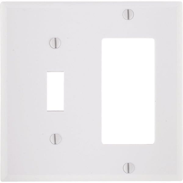 Standard size rocker switch/GFCI (ground fault circuit interrupter) and single toggle switch thermoset plastic wall plate. UL (Underwriters Laboratories) listed.