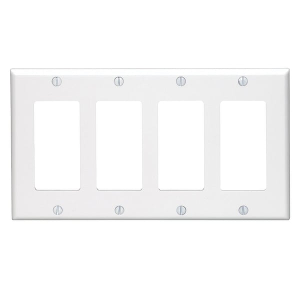 Decora 4-Gang Smooth Plastic Rocker Decorator Wall Plate, White