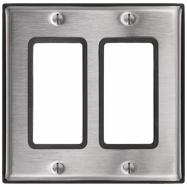 Decora Device Wall Plate, Number of Gangs: 2 Stainless Steel, Not Applicable Finish, Silver