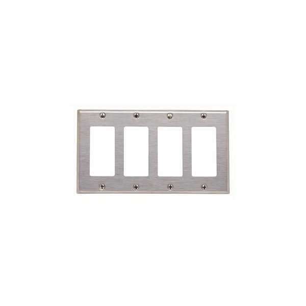 Decora Wallplate, Standard Size, Gang 4, Brushed Stainless Steel