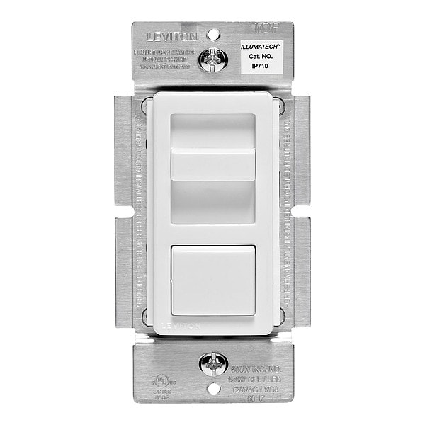 Lighting Dimmer, Lighting Technology Fluorescent, LED, Switch Type 1-Pole, 3-Way, Operating Voltage 120/277V AC, Load Rating @ 120V AC 1,200VA (Fluorescent, LED), Switch Style Push Button On/Off, Slide Dimming, Neutral Required No, Color Ivory; Light Almond; White, Load Rating @ 277V AC 1500VA (Fluorescent, LED), Dimming Method 0-10V, Dimming Type Full Continuous Dimming, Includes Wall Plate Wall Plate Not Included, Series IllumaTech, Current Rating 10 A, Illuminated No