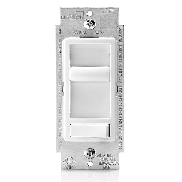 Lighting Dimmer, Lighting Technology Fluorescent, Incandescent, LED, Switch Type 1-Pole, 3-Way, Operating Voltage 120V AC, Load Rating @ 120V AC 150W (CFL, LED), 600W (Incandescent), Switch Style Rocker On/Off, Slide Dimming, Neutral Required No, Color White, Load Rating @ 277V AC Not Applicable, Dimming Type Full Continuous Dimming, Includes Wall Plate Wall Plate Not Included, Series SureSlide, Illuminated No, Number of Gangs 1, Standards UL Listed/CSA Certified, Rated Frequency 60 Hz