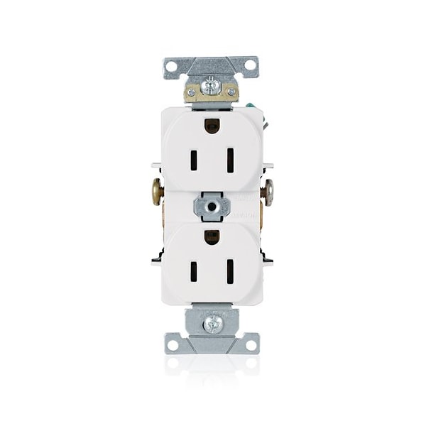 Duplex Straight Blade Receptacle, 5-15R, 15 A, 125V AC, 2 Pole, 3 Wire, Flush Mount, Grounded
