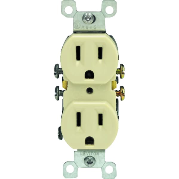 Duplex Straight Blade Receptacle, 5-15R, 15 A, 125V AC, 2 Pole, 3 Wire, Grounded