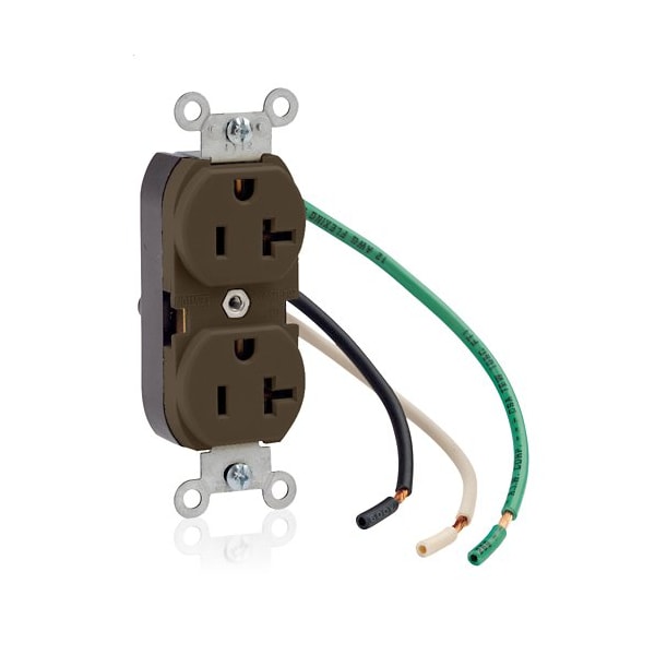 Duplex Straight Blade Receptacle, 5-20R, 20 A, 125V AC, 2 Pole, 3 Wire, Flush Mount, Grounded