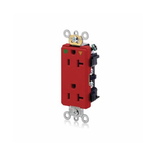 20-Amp, 125-Volt, Decora Plus Duplex Receptacle, Straight Blade, Hospital Grade, Isolated Ground, Red