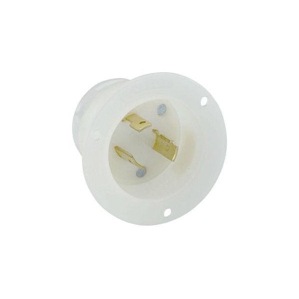 Flanged Locking Inlet, 20 A, 125V AC, Single Phase, 2 Pole, Flush Mount, Screw Terminals, White