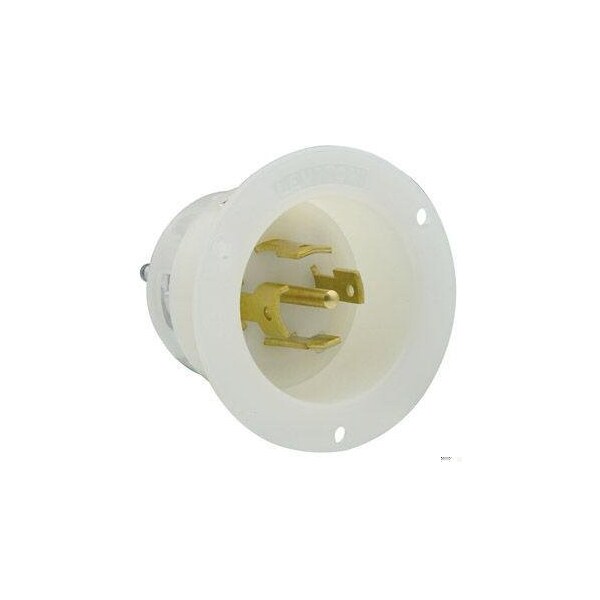 Flanged Locking Inlet, 30 A, 277/480V AC, Three Phase, 4 Pole, Flush Mount, Screw Terminals, White