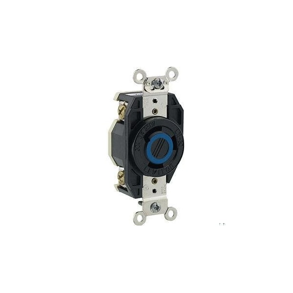Flanged Locking Receptacle, L11-30R, 30 A, 250V AC, Three Phase, 3 Pole, Flush Mount, Black