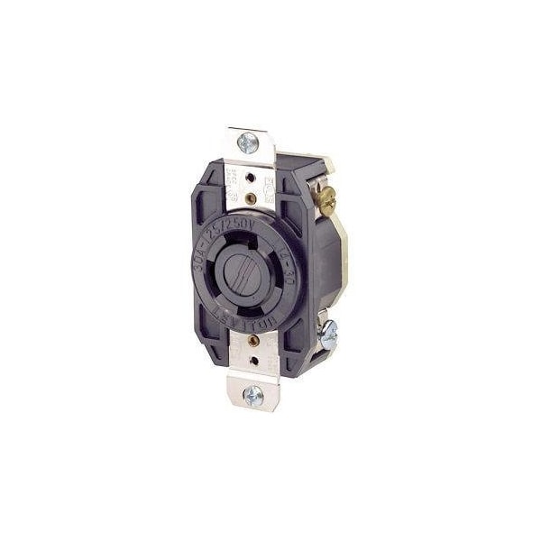Flanged Locking Receptacle, L14-30R, 30 A, 125/250V AC, Single Phase, 3 Pole, Flush Mount, Black