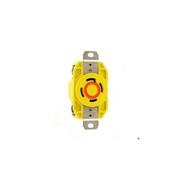 Flanged Locking Receptacle, L14-30R, 30 A, 125/250V AC, Single Phase, 3 Pole, Flush Mount, Yellow